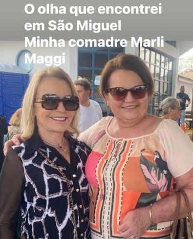 Marli Maggi, da poderosa família oestina no Mato Grosso, com sua comadre, a cascavelense Edite Maria Destefani em domingo de festa em São Miguel do Iguaçu. Foto: arquivo pessoal.