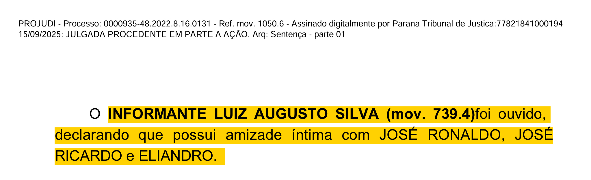 Anos depois, os mesmos personagens reaparecem na ação penal nº 0000935-48.2022.8.16.0131, que apura os fatos de 2015. Além de Zapparoli, figuraram como réus José Ronaldo da Silva, José Ricardo Crema Tiba e outros envolvidos na administração municipal.