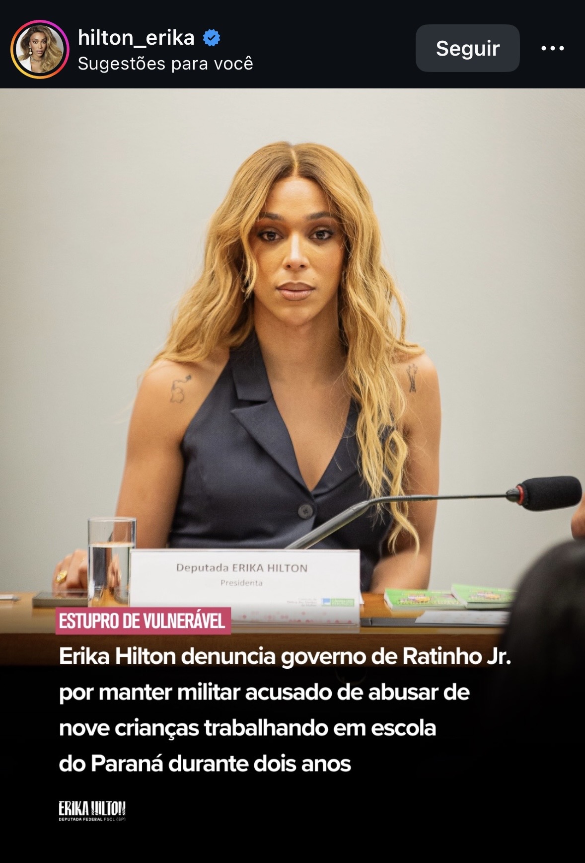 Erika Hilton denuncia caso de abuso em escola cívico-militar do Paraná e cobra investigação sobre atuação do governo Ratinho Jr.