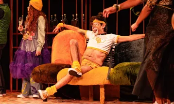 A artista apresenta trabalhos que criam espaços pictóricos únicos, construídos pela justaposição de diferentes elementos. Há grandes telas com cores saturadas que lembram cortinas de teatro com flores e tecidos estampados, drapeados e desfiados.