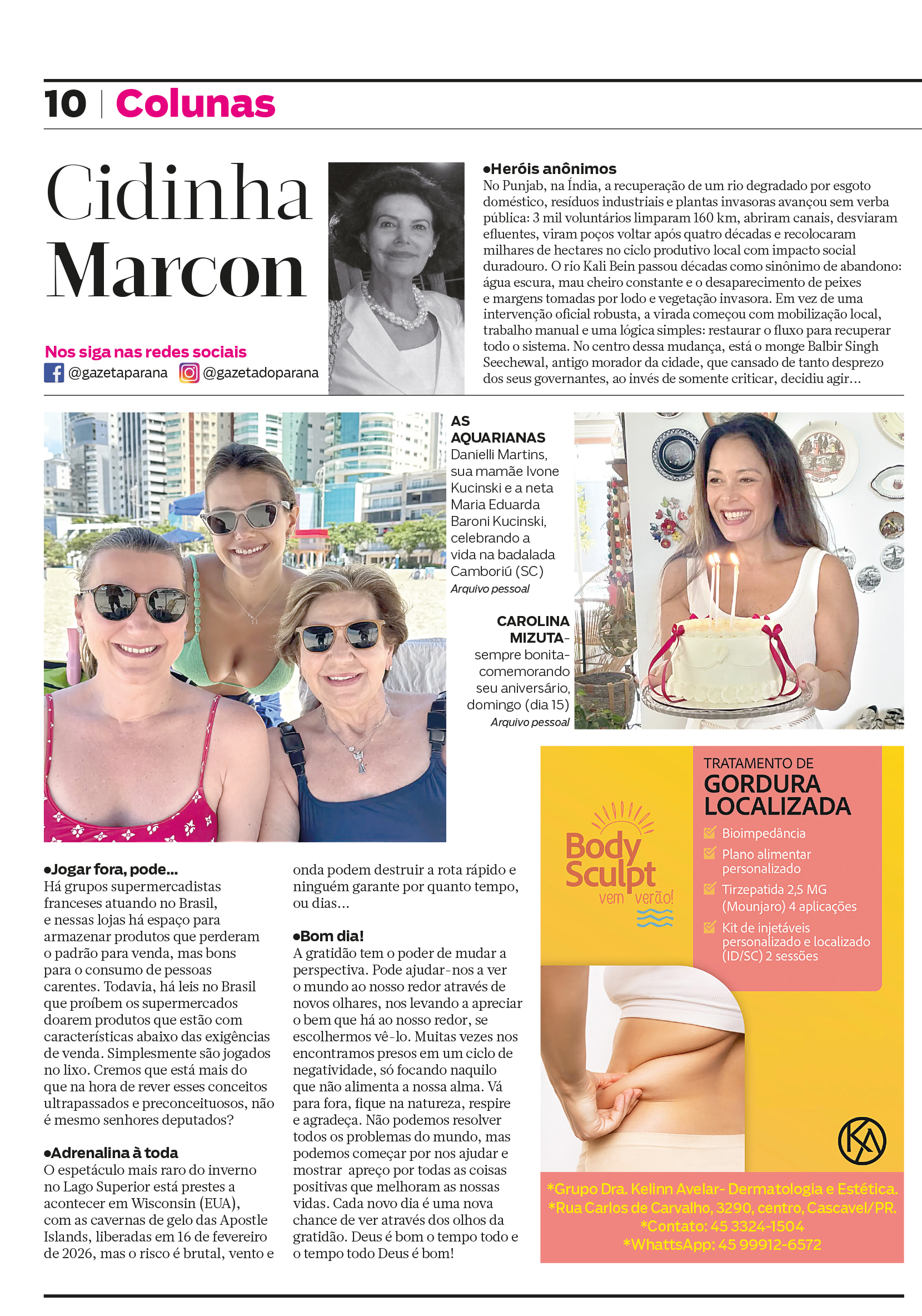 As aquarianas Danielli Martins, sua mamãe Ivone Kucinski e a neta Maria Eduarda Baroni Kucinski, celebrando a vida na badalada Camboriú (SC) Arquivo pessoal