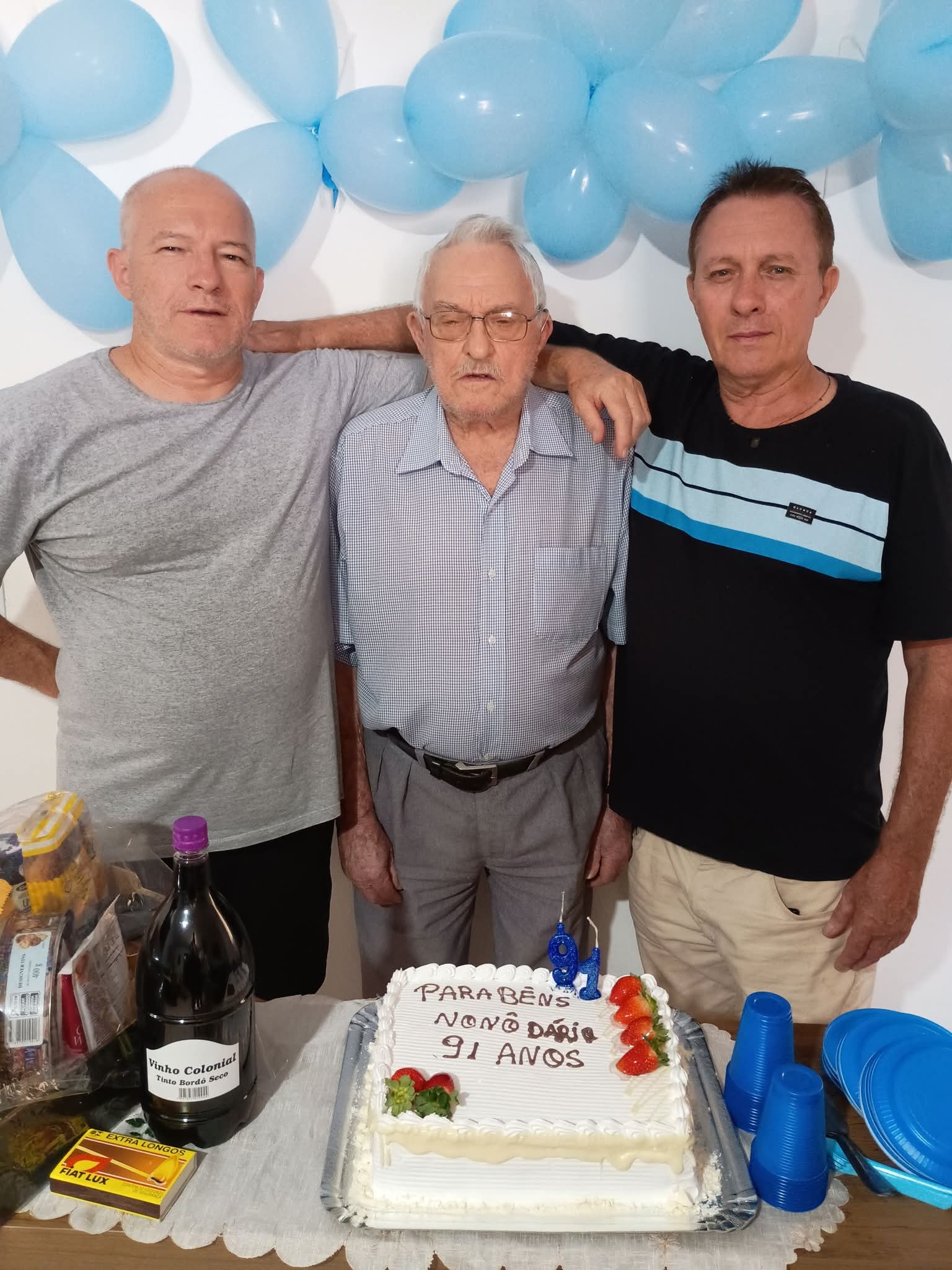 Sessao família- Joao Renato Zibetti e seu irmão Betão com seu papai Dario, quando completou 91 anos- palmeirense roxo e super antenado nas