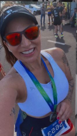 Patricia Pacheco fazendo o gosta- domingando em competitiva maratona. Foto: arquivo pessoal.