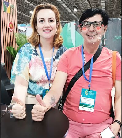 Karin Uscocovich esteve participando do XLII Congresso Brasileiro de Psiquiatria, de 04 a 08 de novembro, no Rio de Janeiro. Aqui com seu colega Egberto Torato, paulista de Campinas. Foto: arquivo pessoal.