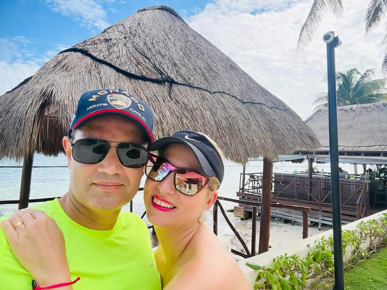 Os curitibanos Patrícia Bertolini e seu amado marido Fabio Machado, estão em Cancun (México) comemorando o aniversário dele, na quinta-feira dia 13 de novembro. Foto: arquivo pessoal.