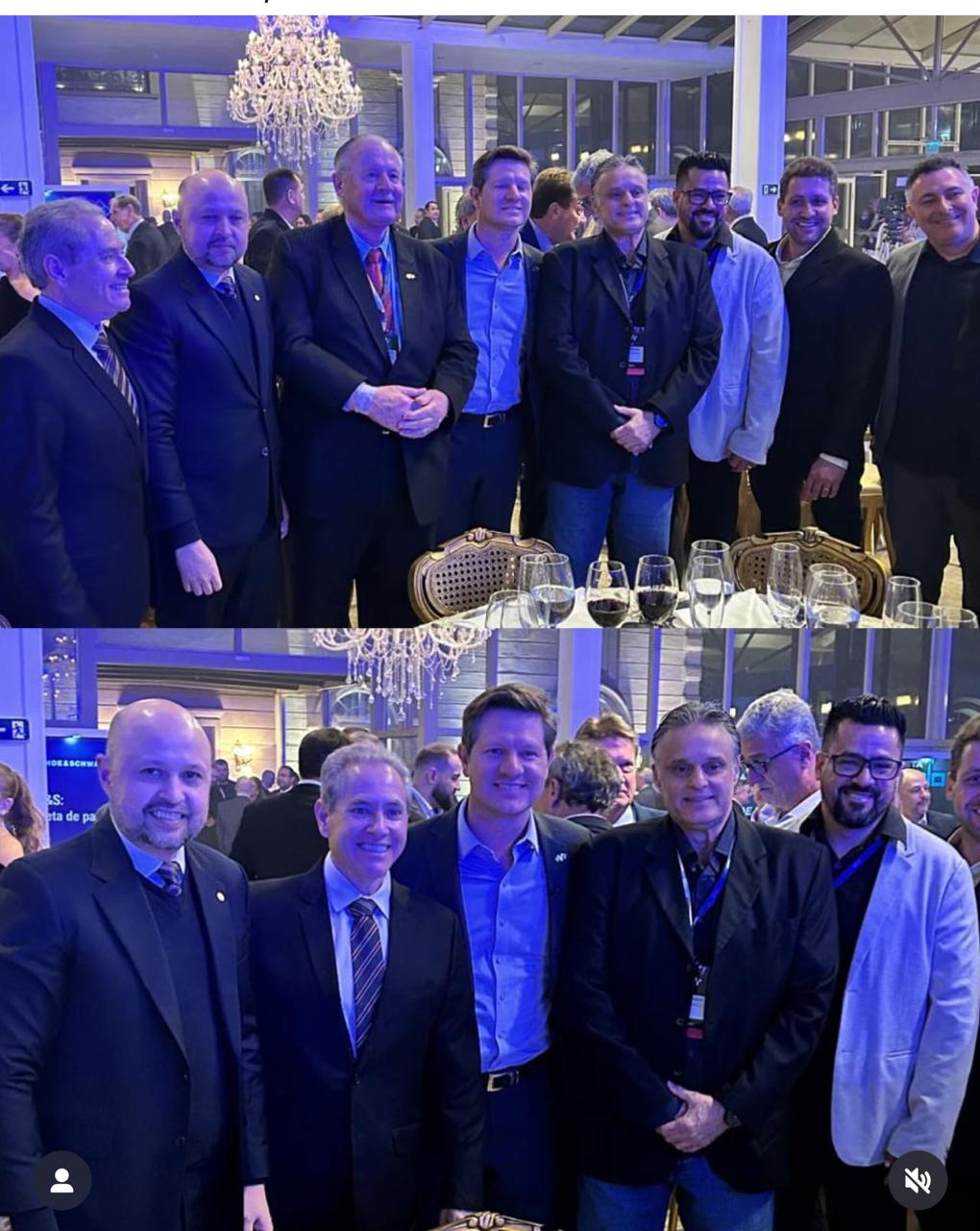 Radiodifusores da imprensa tradicional de Cascavel marcaram presença no encontro da Associação das Emissoras de Radiodifusão do Paraná- AERP, que aconteceu entre os dias 23 a 25 de setembro, nas dependências do Castelo do Batel, em Curitiba. Proprietários, diretores e colaboradores das Rádio Colméia, Massa e 92.3, congratularam no importante evento da comunicação. Valdomiro Cantini (homem de comunicação), Edson Jose de Vasconcelos (presidente da FIEP), Orlando Pessuti (ex-governador do Estado), Santin Roveda (presidente do Detran), Duka Siliprandi (proprietário da Rádio Studio 92.3 FM), Paulo Cesar (Gerente TI da Rádio Estúdio 92.3 FM), Fabiano Cantini e Fernando Potrich. Foto: divulgação.